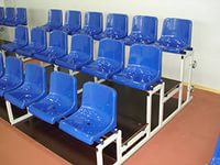 * Спортивные сиденья. Разнообразие видов определяется не только дизайном, но и обычным или антивандальным исполнением, материалом из которого изготовлены пластиковые сиденья, мягкие спортивные кресла, а также лавки из дерева.